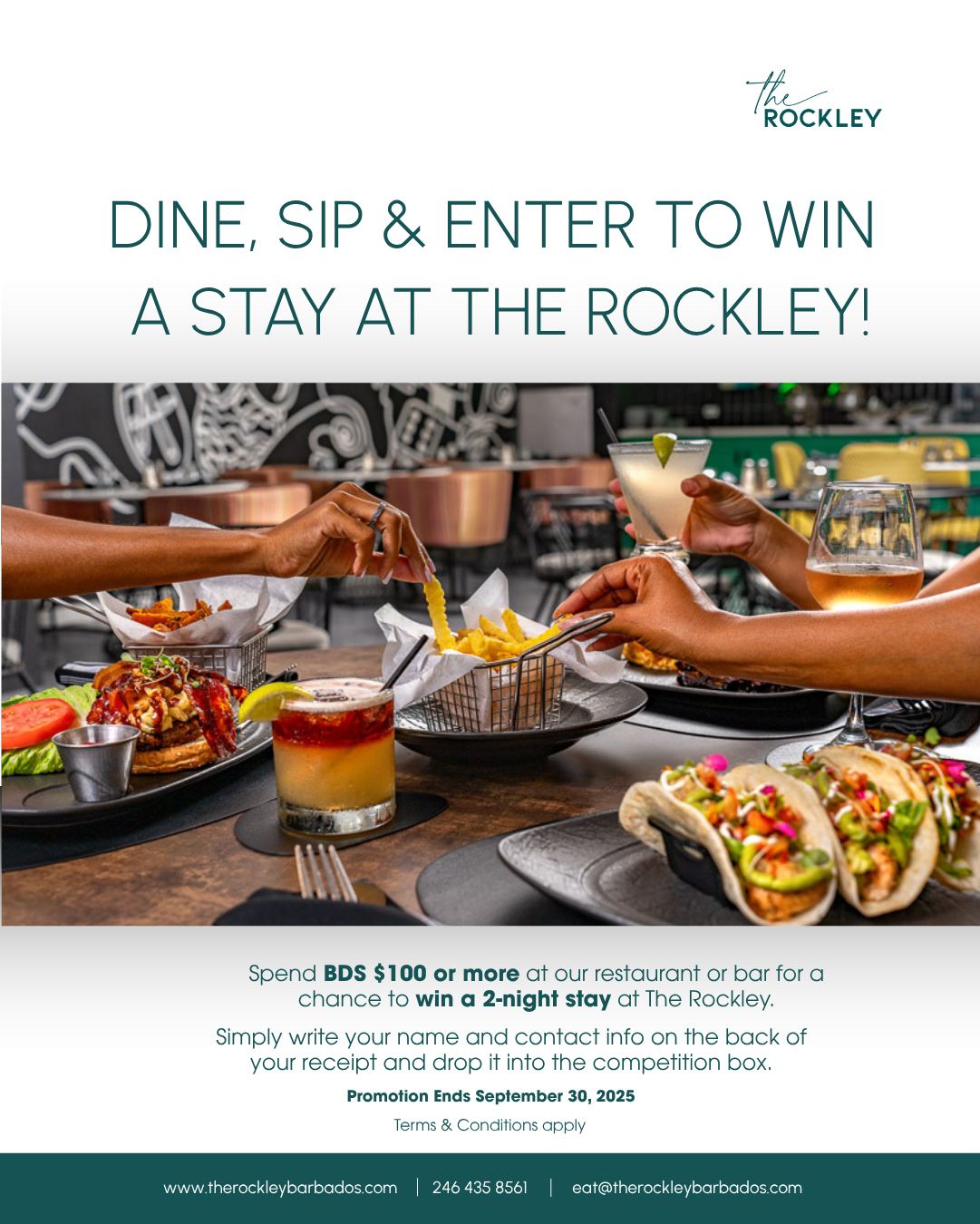 The Rockley RestaurantThe reimagined Rockley Restaurant is your go-to for vibrant local culture and deliciously good vibes. The outdoor covered bar offers a trendy beach club atmosphere, while the stylish air-conditioned interior dining area displays local artwork with a hand-painted black and white mural showcasing some of Barbados' most iconic items and symbols, including sheep, dominoes, chickens, and more.
